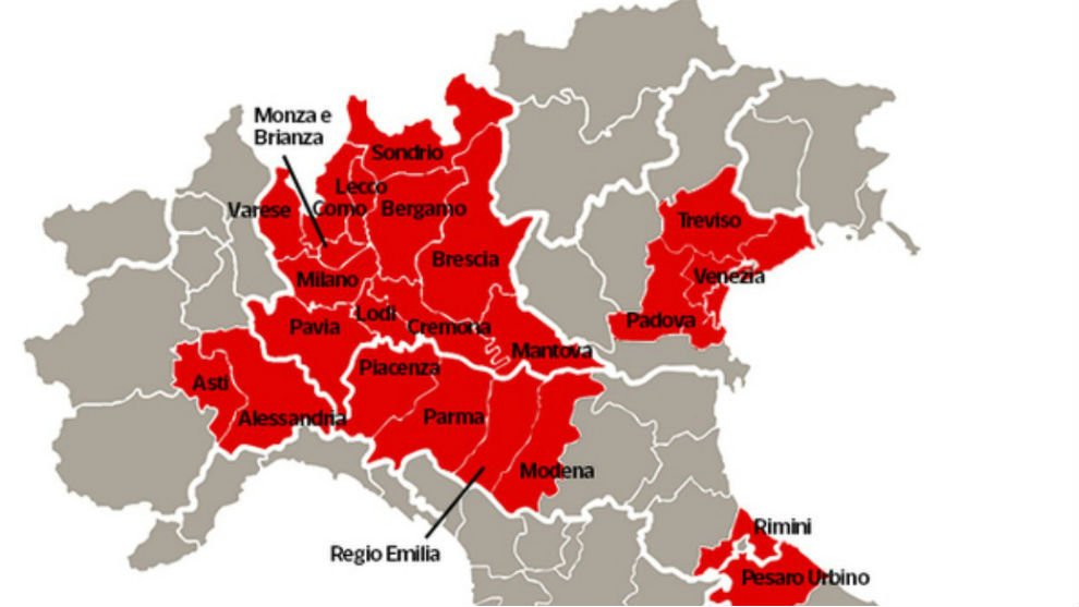 Dans le détail, dans la région de la Lombardie et dans les provinces de Modène, Plaisance, Parme, Reggio Emilia, Rimini, Pesaro–Urbino, Venise, Padoue, Trévise, Asti et Alexandrie, il sera strictement interdit « tout mouvement entrant et sortant des territoires visées par le décret ». Quiconque se trouve sur ces territoires ne peut pas se déplacer à l’intérieur des terres et personne ne peut entrer.
