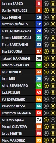 Quartararo, Mir, Rins (Voir ici) |
