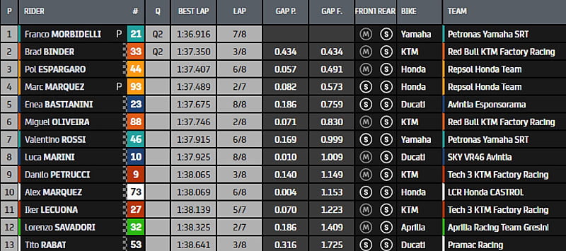 Morbidelli passe second et éjecte donc provisoirement Marc Marquez de la Q2…