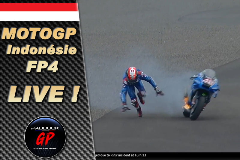 Dans la foulée, on aperçoit la Suzuki d’Álex Rins en train de prendre feu au virage #13… entrainant l’apparition du drapeau rouge et l’arrêt de la séance pour nettoyer l’huile déversée sur la piste. Les deux incidents sont-ils liés ? C’est probable…