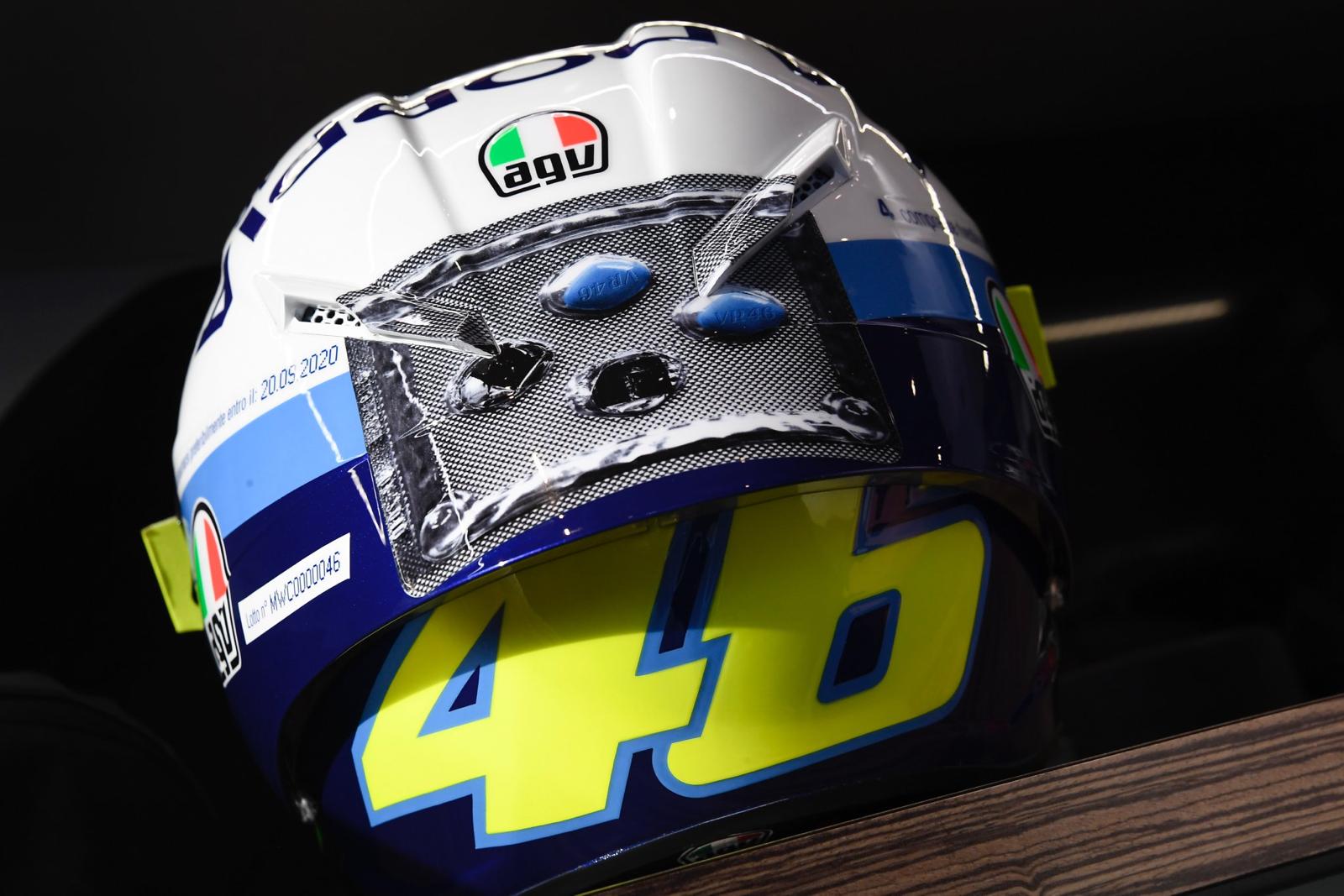 Au passage, Valentino Rossi a pris une deuxième pilule magique pour se donner un peu plus de vigueur. La preuve avec son casque…