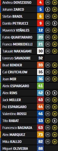Joan Mir, qui a connu un problème technique hier, remonte dans le classement, tout comme Johann Zarco et Valentino Rossi.