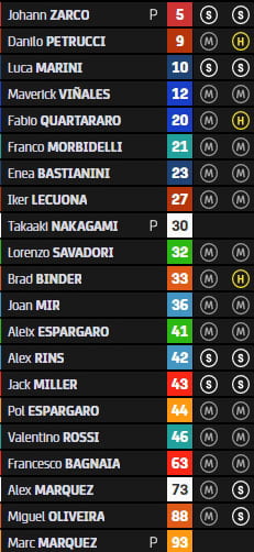 Classement du Warm Up du Grand Prix du Portugal MotoGP à Portimao: