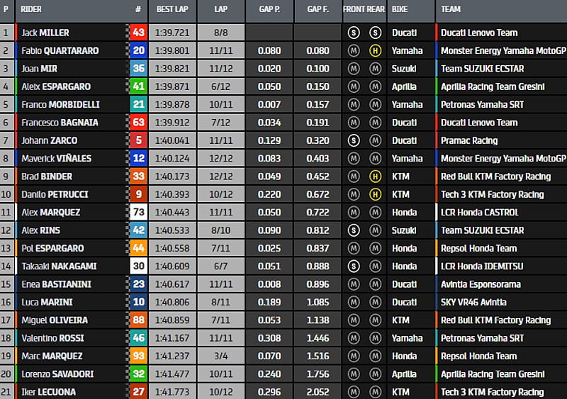 Au final, c’est cependant Jack Miller qui, à la dernière seconde, inscrit 1’39.721 tout en haut du tableau !