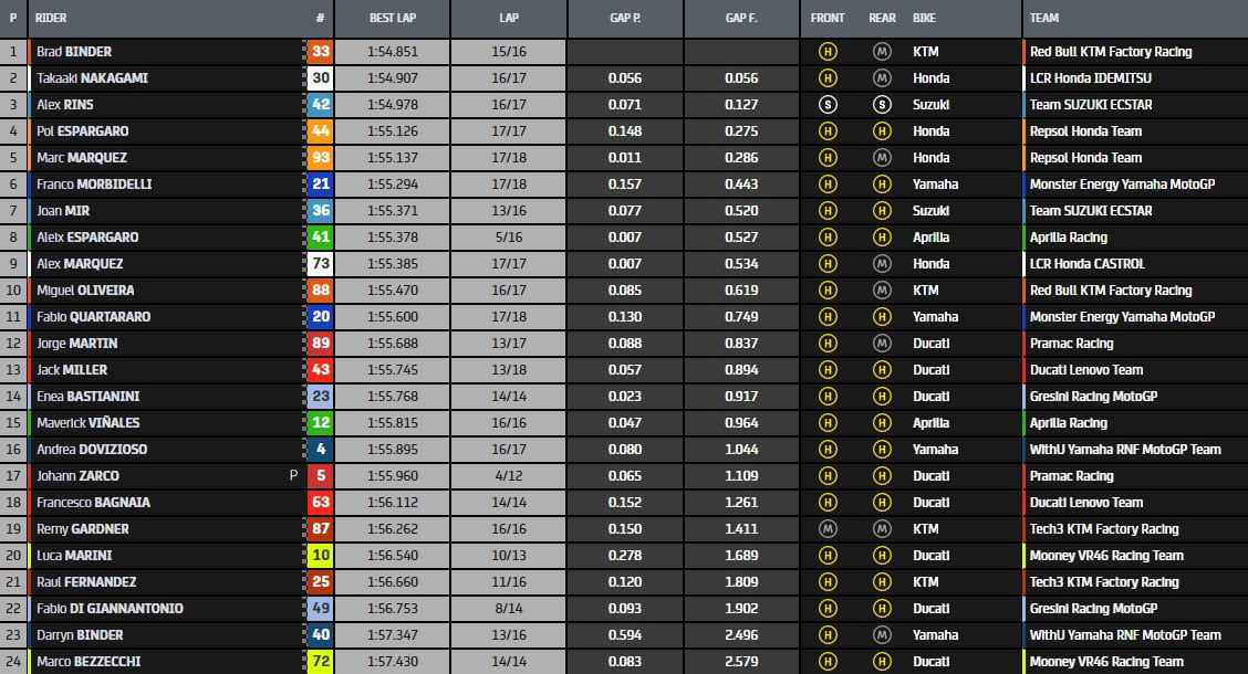 On croit en rester là mais, surprise, Brad Binder coiffe tout le monde au poteau en 1’54.851 en pneu arrière médium !