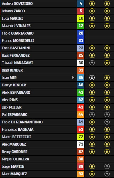 Les toutes nouvelles Honda, en grand regain de forme, tout comme leur fer de lance Marc Márquez, les Ducati qui font figure d’épouvantail, les Aprilia en pleine progression, les Suzuki bien optimisées et les KTM sur une nouvelle approche auront à cœur de mettre à mal les Yamaha qui semblent avoir très peu évolué durant l’intersaison. Face à tout cela, le champion du monde en titre Fabio Quartararo, qui a remporté la dernière course sur le circuit de Losail devant Johann Zarco, aura donc fort à faire, à commencer par bien se qualifier, seule option pour pouvoir tenter de prendre la tête et exploiter au mieux les qualités de sa M1.