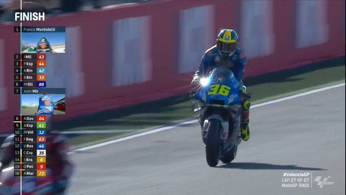 🏁 #MotoGP RACE@FrankyMorbido12 wins after a thrilling final lap!!!#MatchPoint | #ValenciaGP pic.twitter.com/QDqeyvxp5x
