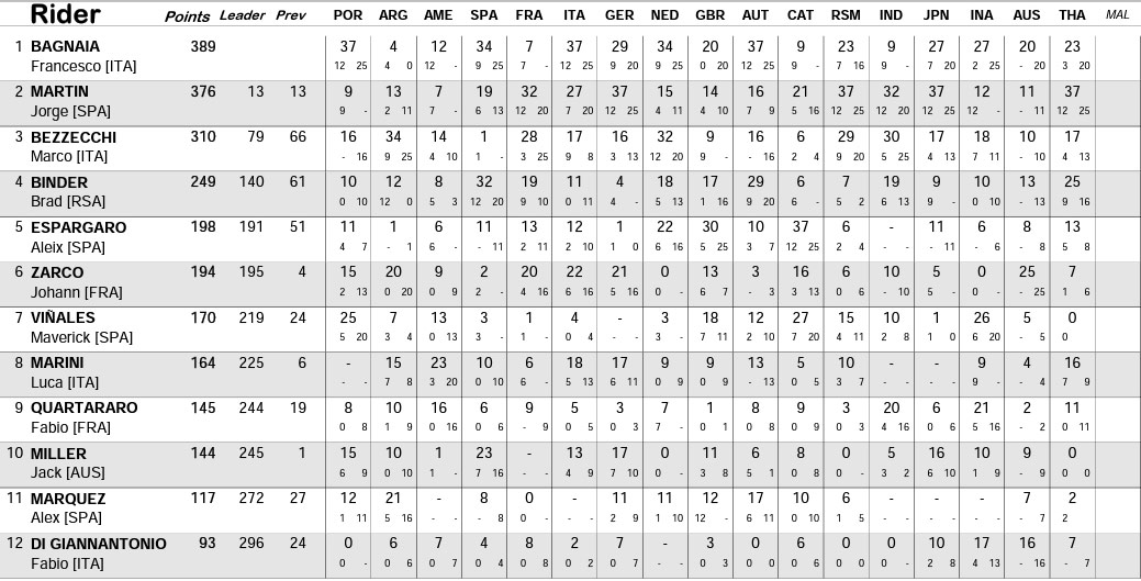 Avec encore 111 points à potentiellement inscrire à partir de cette 18e des 20 étapes qui se déroule ce week-end, tout reste donc ouvert pour les trois premiers, mais malheureusement plus pour le pilote sud-africain depuis la Thaïlande, où il a pourtant fait deux très belles courses.