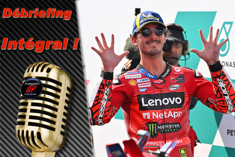 Mesdames et messieurs, bienvenue à la conférence de presse d’après course, à l’issue d’un Grand Prix Petronas passionnant en Malaisie, sur le circuit international de Sepang. Une fois de plus, ce sont des Ducati GP24 qui verrouillent les trois premières places. Votre vainqueur pour la 10ème fois du Grand Prix du dimanche en 2024, le champion du monde en titre, le pilote de l’équipe Ducati Lenovo, Pecco Bagnaia, Pecco est seulement le 4ème pilote dans l’ère du MotoGP à gagner 10 Grand Prix en une seule saison. Jorge Martin, de Prima Pramac Racing, occupe la deuxième place et mène le championnat du monde avec 24 points à une manche de la fin. Enea Bastianini, pilote de l’équipe Ducati Lenovo, complète le podium d’aujourd’hui, tout comme il l’avait fait hier lors du Tissot Sprint. Messieurs, bravo à tous les trois ! Les conditions étaient très difficiles aujourd’hui.