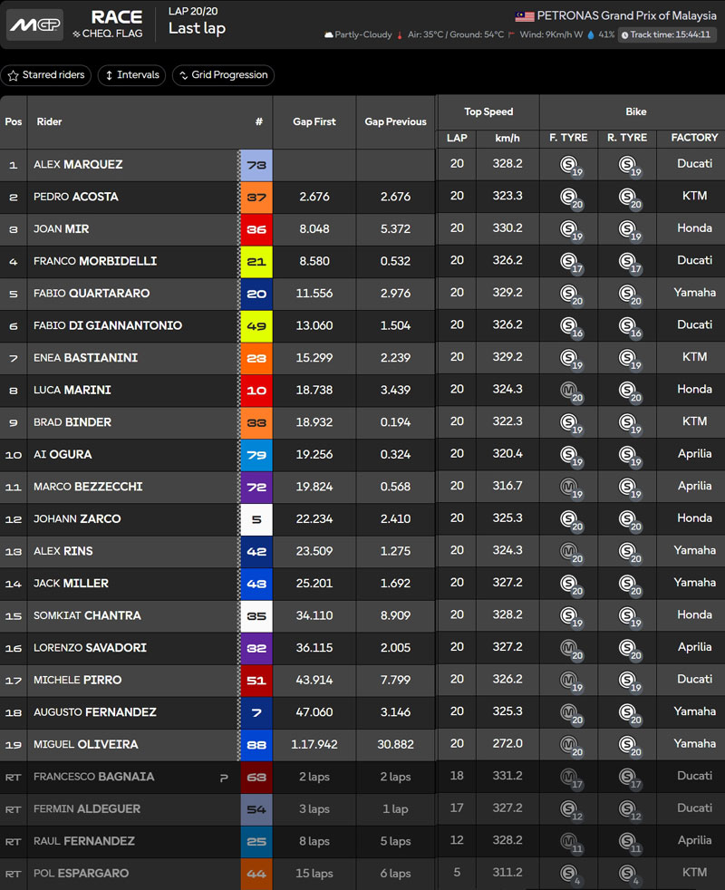 Résultats du Grand Prix de Malaisie à Sepang :