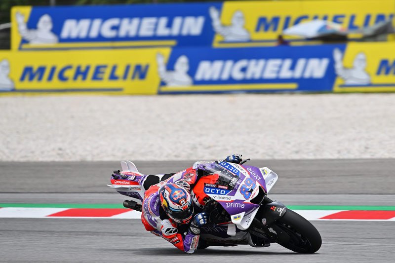 Les conditions sèches du vendredi pour les Essais Libres 1 (FP1) ont permis aux pilotes de tester les différentes options des MICHELIN Power Slick. En raison d’une météo incertaine et des éventualités de drapeaux jaunes, certains pilotes ont chaussé des pneus neufs pour attaquer en fin de session. Brad Binder (Red Bull KTM Factory Racing) a monté des Medium avant et arrière pour signer le meilleur chrono en 1min59s479 – un temps plus rapide de près de 2/10e que le record du tour. De fortes pluies l’après-midi ont retardé le début des Essais Libres 2 et ont permis aux pilotes de travailler sur les set up pluie.