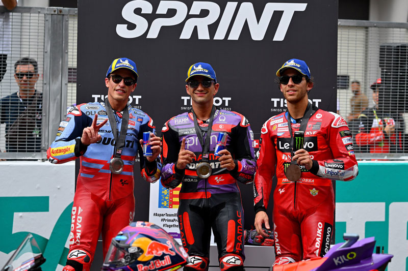 Samedi après-midi, c’est Jorge Martin (Prima Pramac Racing) qui a remporté la Tissot Sprint, devant Marc Marquez (Gresini Racing) et Enea Bastianini (Ducati Lenovo Team).