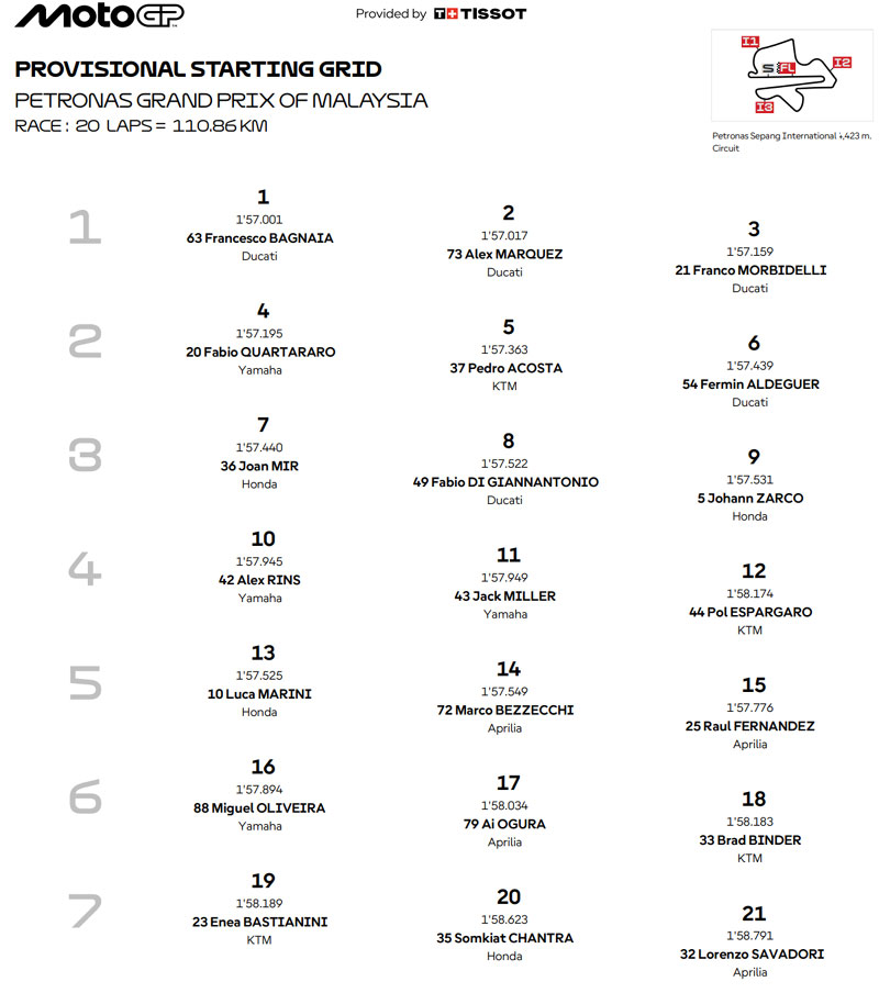 MotoGP Malaisie Sepang Course LIVE : Alex Marquez domine, Francesco Bagnaia fulmine…