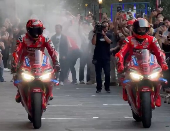 Le 9 février 2025, Bangkok a vibré au rythme de la MotoGP avec la présentation officielle de la saison 2025. L’événement, organisé au complexe One Bangkok, a offert une immersion totale dans l’univers de la MotoGP. Les pilotes ont montré leur proximité avec les fans lors de séances de dédicaces et de distributions de cadeaux. Parmi eux, le duo officiel Ducati composé de Pecco Bagnaia et Marc Marquez.