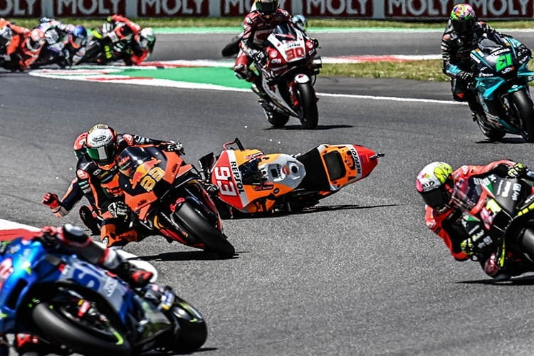 Au Mugello, Marc Marquez s’est plus souvent retrouvé dans les mauvais coups que sous la lumière. Son écueil ? Chercher obstinément une roue pour réaliser une performance que son état physique ne lui permet pas de faire seul. Une stratégie qui passerait si elle était appliquée avec intelligence et discrétion. Mais ce n’est pas le genre de la maison…