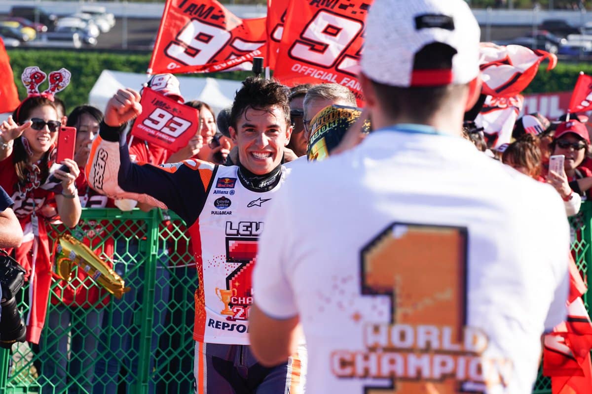 Marc Marquez, à 25 ans, en est à présent à sept titres mondiaux. Il est aussi celui qui chute le plus en une saison. Mais lorsqu’il tombe, c’est comme s’il choisissait ses moments. Rarement l’accident arrive lorsque des points pour la course au titre sont en jeu. Ce qui fait ce paradoxe : le même Marquez est également régulier. Sans encore jouer les épiciers, le martial homme de Cervera se convertit doucement au principe d’être avant tout à l’arrivée. Une évolution dont il parle…