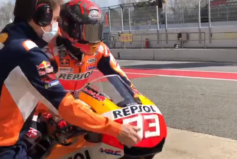 Simple coïncidence ou pas, le paddock MotoGP n’a pu s’empêcher de noter que, si Marc Marquez était bien absent aux tests MotoGP qui viennent de se dérouler au Qatar, ses communication se multipliaient exactement au même moment: contrôle médical allumant les feux au vert pour un retour à la compétition, premier roulage sur une minimoto, voyage éclair au Qatar pour se faire vacciner, séance de musculation au Ritz-Carlton de Doha sous les yeux médusés des autres pilotes et, ce matin, publication d’une vidéo au guidon d’une Honda RC213V-S, la soeur routière de sa RC213V de Grand Prix.