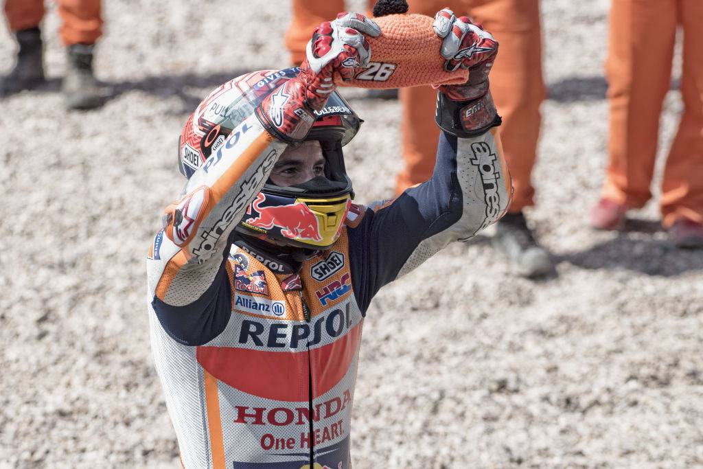 Sur le Sachsenring, il n’a pas fait dans la dentelle en prenant d’assaut un gradin aux couleurs de Valentino Rossi. Cette fois, aucun quolibet ne s‘est fait entendre et les fans ont même participé à la liesse du vainqueur. Puis de retour vers sa moto, il a pris le bonnet d’un commissaire fan de Dani Pedrosa pour mettre à l’honneur le numéro 26.