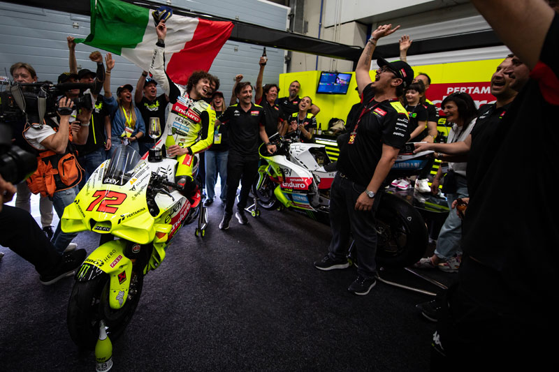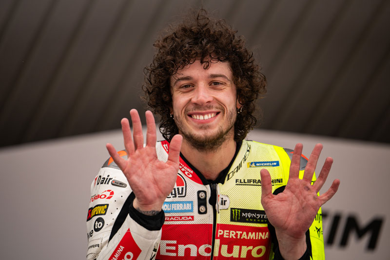 Alessio Salucci : « C’est un moment doux-amer pour notre équipe. D’une part, nous ne pouvons qu’être heureux d’avoir joué un rôle important dans le passage d’un jeune pilote de la VR46 Riders Academy à une structure officielle, d’autre part, après cinq saisons, notre relation avec Marco est vraiment spéciale, familière, nous avons partagé beaucoup de beaux moments ensemble, et de nombreux succès dans notre histoire sont liés à son nom. Avec lui, nous avons atteint l’un des objectifs pour lesquels cette équipe est née : amener de jeunes talents des classes inférieures au MotoGP, les faire progresser, les mener au succès et les soutenir jusqu’à ce qu’ils atteignent une structure officielle. Marco nous a offert deux belles saisons en Moto2, mais il a surtout été le premier pilote de l’équipe à monter sur le podium et à remporter une course dans la catégorie supérieure, ainsi qu’à atteindre la troisième place au classement général dès sa deuxième année en MotoGP. En tant qu’équipe, c’est une fierté et une motivation supplémentaire pour nous de continuer dans cette direction, de créer un modèle à répéter, de toujours viser haut et de nous consolider en tant que structure de référence dans le Championnat. En ce qui concerne Marco, au-delà des grands résultats, nous nous souviendrons des nombreux moments partagés sur et en dehors de la piste. En tant que Pertamina Enduro VR46 Racing Team, nous ne pouvons que lui souhaiter un avenir plein de succès et de satisfactions. Jusqu’à Valence, nous continuerons à travailler sans rien laisser au hasard pour atteindre ensemble des objectifs ambitieux ».