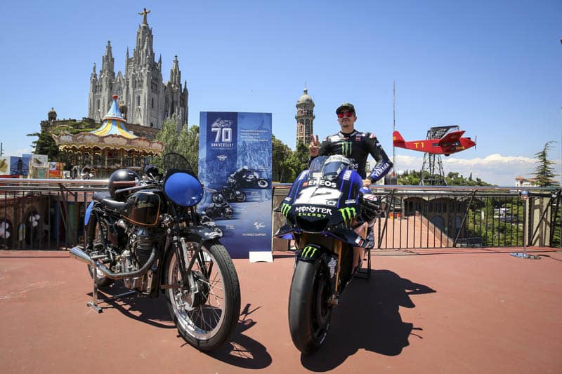 Le Gran Premi Monster Energy de Catalunya est plus que la 7e manche du championnat MotoGP. Cette année, le jeudi avant l’action en piste marque les 70 ans depuis la première course du Championnat du Monde de courses moto en 1949. Donc pour célébrer son début, son évolution, et ce qu’il est aujourd’hui, le MotoGP™ a fait le tour de Barcelone, montrant les machines passées et présentes, avec dans le rôle principal Maverick Viñales (Monster Energy Yamaha MotoGP).