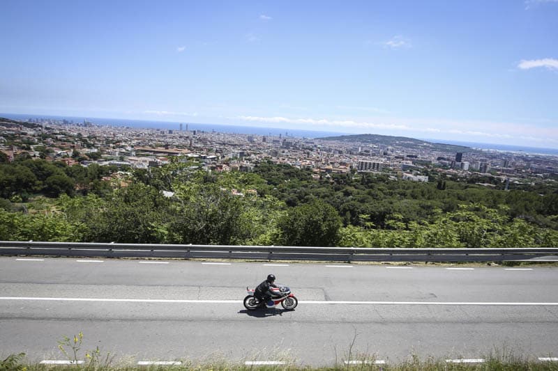 Ce n’est pas tout. En plus des expositions dans toute la ville, Maverick Viñales a fait le show à Tibidabo. Tibidabo, le plus haut sommet du massif de Collserola qui borde Barcelone au nord et qui offre l’une des vues les plus spectaculaires de Catalogne, est surmonté par le Temple Expiatori del Sagrat Cor (Église Expiatrice du Sacré-Cœur de Jésus) et le célèbre parc d’attractions du Tibidabo, auquel Viñales est arrivé sur une Yamaha TZ 350 1975.