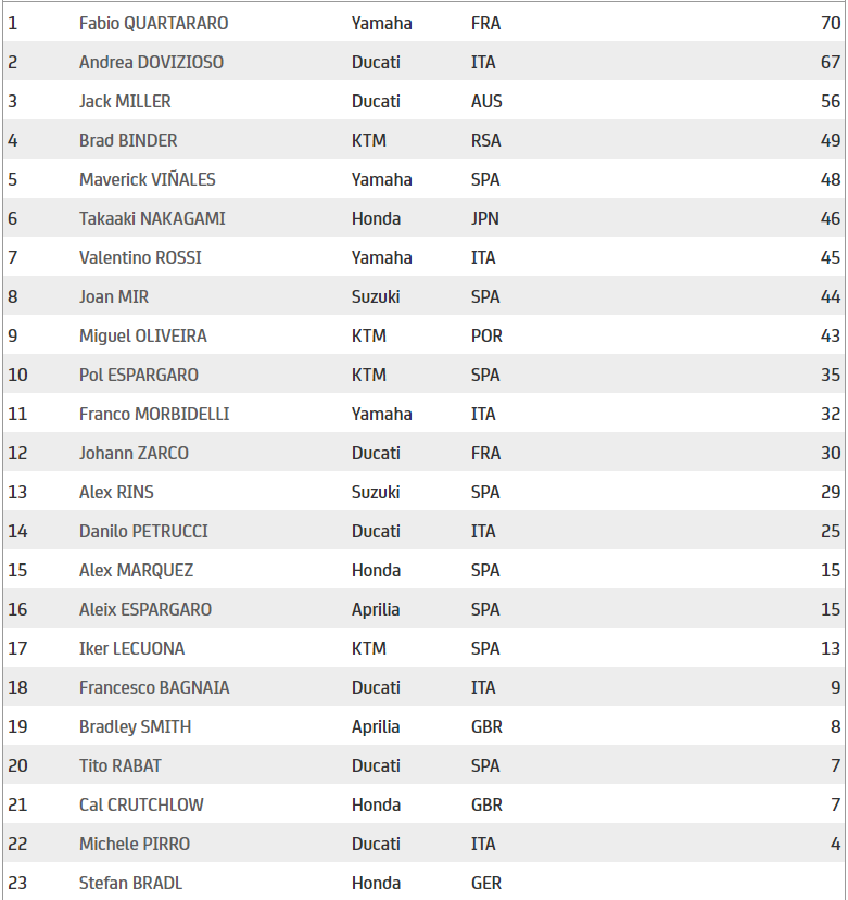 « C’est très difficile, car dans mon cas, nous avons échoué trois courses de suite, c’est comme si nous avions trois zéros. A Brno j’ai eu un problème avec le pneu arrière, puis en Autriche une panne d’embrayage et puis j’ai perdu mon frein. Tout est très ouvert, ça change beaucoup d’un circuit à l’autre. Peut-être que maintenant, en arrivant à Misano, la Yamaha va marcher et que nous dominerons à nouveau. Ou ce sera le cas de la Ducati. C’est un championnat du monde très étrange » a commenté l’officiel Yamaha.