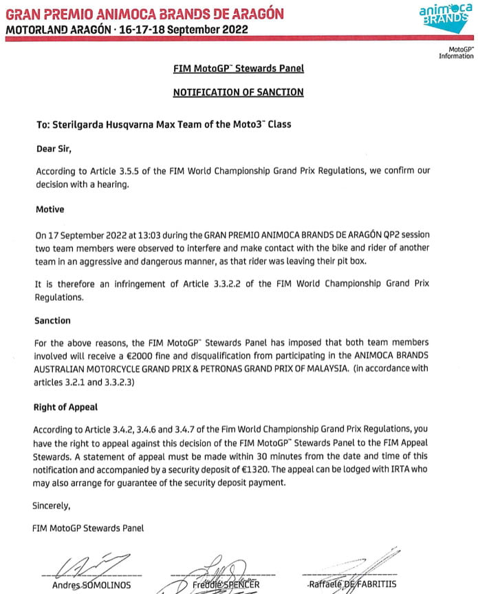 Those responsible will be appropriately punished. https://t.co/Hia5Usr3U0— Max Biaggi (@maxbiaggi) September 17, 2022