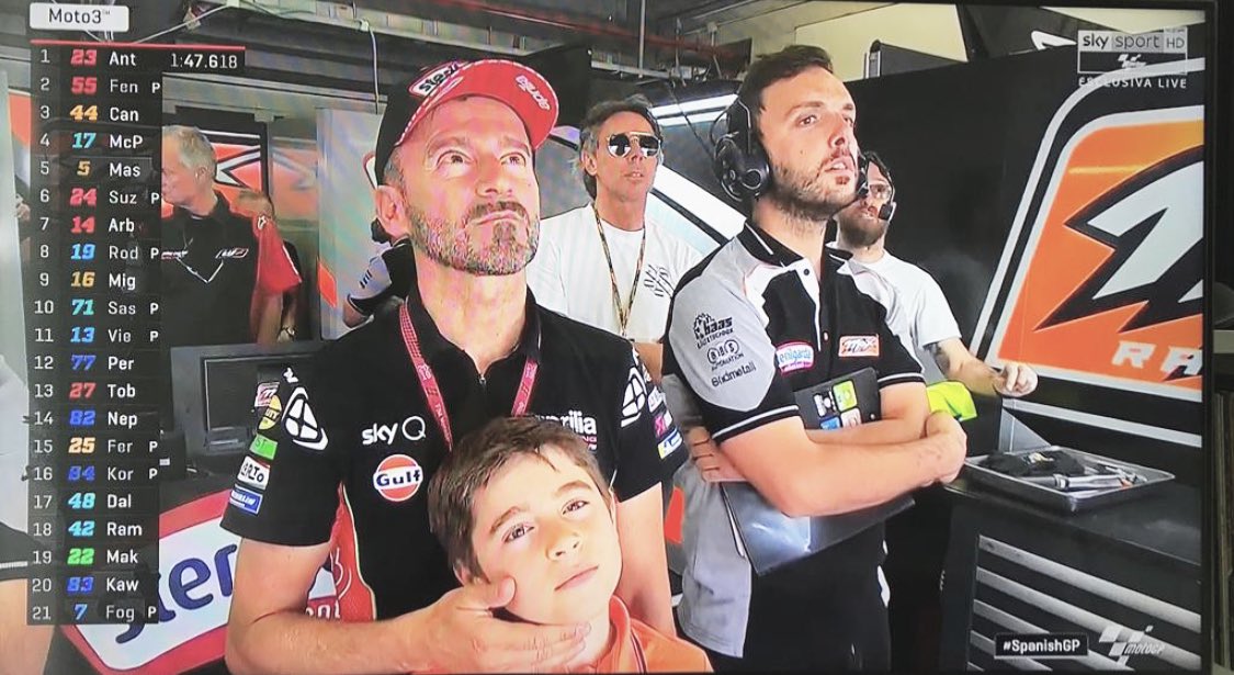 « Il y a toutes les conditions pour bien faire. Andrea n’économise pas ses efforts et je suis vraiment désolé pour la blessure qu’il a subie samedi ! Je suis sûr qu’il sera en mesure de prouver sa valeur en grimpant dans les classements et en atteignant les positions qui sont les siennes et celles d’Aprilia ».