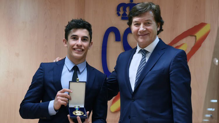 Marc Márquez, de son côté, pourra mettre une médaille d’or à côté de ses titres de Champion du Monde, dont quatre conquis en MotoGP. Trois autres pilotes étaient aussi primés lors de cette cérémonie : Joan Mir (EG 0,0 Marc VDS) pour son titre Moto3, Arón Canet (Estrella Galicia 0,0) pour sa troisième place dans cette même catégorie et Alonso López (Estrella Galicia 0,0) pour sa troisième place en Championnat du Monde Moto3 Junior. Un espoir qui fera son arrivée en mondial cette année et ainsi perpétuer cette dynastie espagnole des circuits.
