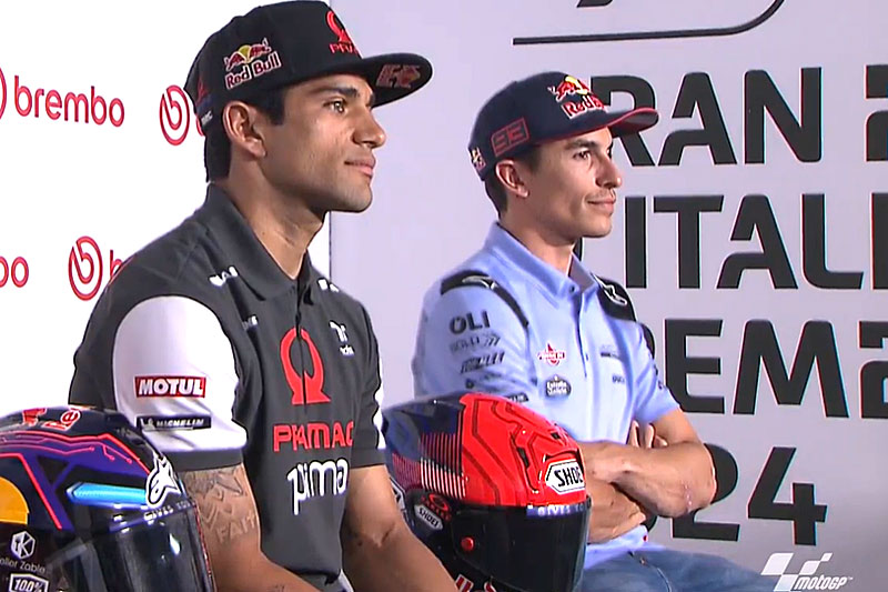 Malgré l’orientation récemment apportée par La Gazetta dello Sport au sujet du coéquipier de Francesco Bagnaia dans l’équipe officielle Ducati en 2025 , il n’y a toujours rien d’officiel de la part de Ducati, mais Jorge Martin et Marc Marquez ont évidemment été interrogé sur le sujet lors de la conférence de presse en prélude au Grand Prix d’Italie MotoGP au Mugello.