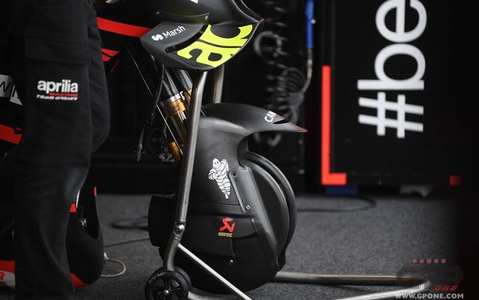Ainsi, GPOne a mis en lumière dans le stand où nichent Aleix Espargaró et Maverick Viñales cette trouvaille d’une garde boue avant chargé de garder le pneu avant à bonne température. Ducati avait montré le déflecteur arrière et voilà qu’Aprilia s’occupe de l’avant. Le freinage et l’aérodynamisme seront aussi optimisés. De quoi donner des migraines à la concurrence nippone ?