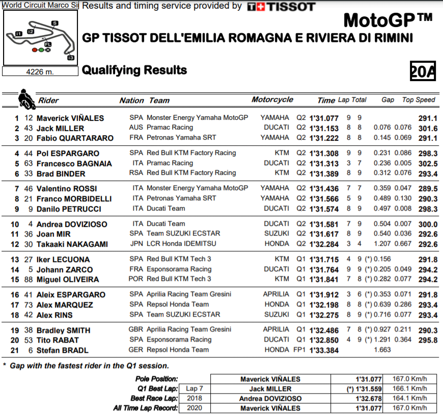 MotoGP Misano 2 J2 : qualifications