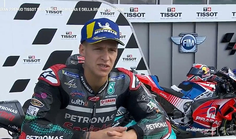 A peine descendu de sa Yamaha satellite du team Petronas SRT après avoir obtenu la 3e position sur la grille de départ du Grand Prix d’Emilie-Romagne à Misano, Fabio Quartararo s’est confié devant la caméra du site MotoGP.com avec la satisfaction d’être en première ligne mais sans doute aussi la petite frustration de ne pas avoir fait la pole…