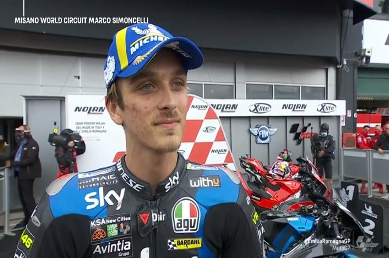 A peine descendu de sa machine après avoir obtenu la troisième place à l’issue des qualifications du Grand Prix d’Émilie-Romagne, Luca Marini s’est confié devant la caméra du site officiel MotoGP.com.