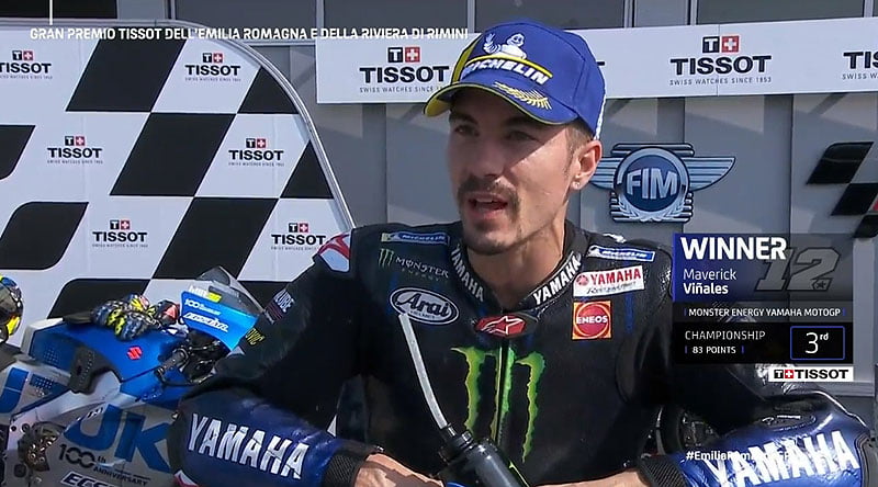 A peine descendu de sa Yamaha M1 officielle après avoir remporté le Grand Prix d’Émilie-Romagne à Misano, Maverick Viñales s’est confié devant la caméra du site MotoGP.com avec la joie procurée par sa première victoire de la saison…