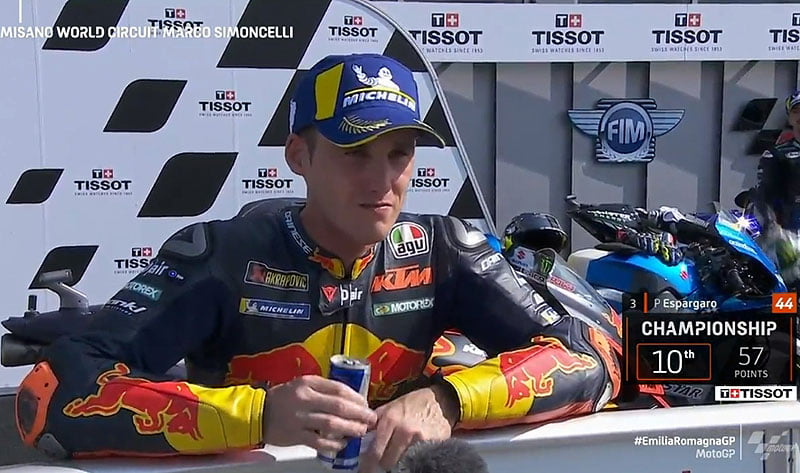 A peine descendu de sa KTM RC16 officielle après avoir obtenu la troisième place du Grand Prix d’Émilie-Romagne à Misano, Pol Espargaró s’est confié devant la caméra du site MotoGP.com avec la satisfaction d’avoir tout donné…