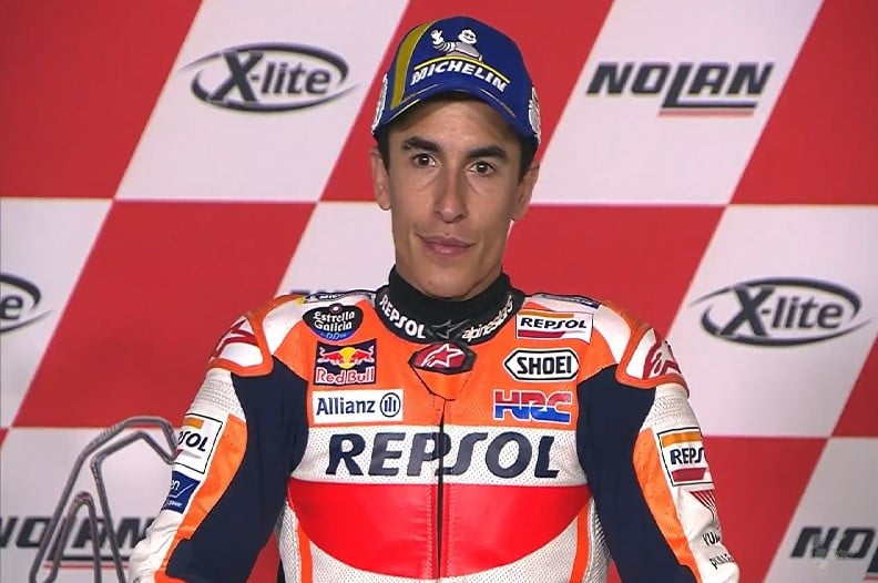 « Oui bien sûr je suis très content aujourd’hui, que ce soit pour moi ou pour l’équipe Repsol Honda. Nous avons réalisé le doublé, et c’est très important, mais le fait est que j’ai gagné sur un circuit tournant dans le sens horaire, et ça représente un nouveau cap de franchi. »