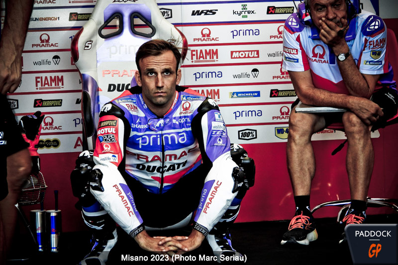 Alors, j’aime Johann, mais on n’avait pas la chance de lui dire 2 années. Pour nous, c’était moto d’usine 2024 là-bas, et après c’est lui (qui doit gagner). Avec la moto d’usine 2024, on ne va pas déjà décider pour 2025. « Tu as au moins la moitié du championnat pour gagner des courses et pour être un pilote d’usine Ducati 2025, mais c’est à toi de démontrer ça ». C’était très clair et je pense qu’il a compris ça. Et même, ce n’était pas « 2025, tu fais la Superbike », c’était  » en 2025, on va décider. Nous, on aimerait bien que si on ne gagne pas en MotoGP, tu vas être pilote d’usine Ducati Superbike ». Le Superbike est très important pour Ducati. On a, je pense, la meilleure équipe et peut-être une des meilleures motos, sinon la meilleure moto en Superbike, et il y aura même à 99% la nécessité de remplacer Alvaro, car je pense qu’il ne va pas continuer à 40 ans, OK. Peut-être oui, peut-être non, mais je pense pas. Alors on a dit « écoute, on fait ensemble une année moto d’usine chez Pramac, tu as toutes les chances de démontrer la première partie de la saison que tu dois rester en MotoGP ». Je ne sais pas mais tu sais déjà que tu as le futur en Superbike, si tu veux continuer en Superbike. OK, il a préféré avoir 2 ans avec Honda. Chapeau, parce que c’est difficile ! Mais c’est son choix. Je pense qu’il faut comprendre que ce n’est pas Ducati qui a dit non, c’est lui qui a dit non. OK ? Ce n’est pas moi de juger, mais je pense que l’offre de Ducati était meilleure que l’offre de Honda, parce que tu as une moto pour gagner, si c’est ton objectif. Je ne pense pas que l’année prochaine dans l’équipe LCR il y aura la chance de gagner des Grands Prix. Il faut travailler beaucoup, alors est-ce qu’on préfère d’essayer de gagner cette année et l’année prochaine ou d’avoir 2 années en MotoGP. Moi je pense que la proposition de Ducati était très bonne parce que ce n’était pas, et je me répète, de dire « 2025, tu es hors MotoGP ». « Tu es sûr d’être avec Ducati en Superbike, mais on va décider en juin, et si tu as en tête au championnat MotoGP l’année prochaine, on va décider à la fin juin ».