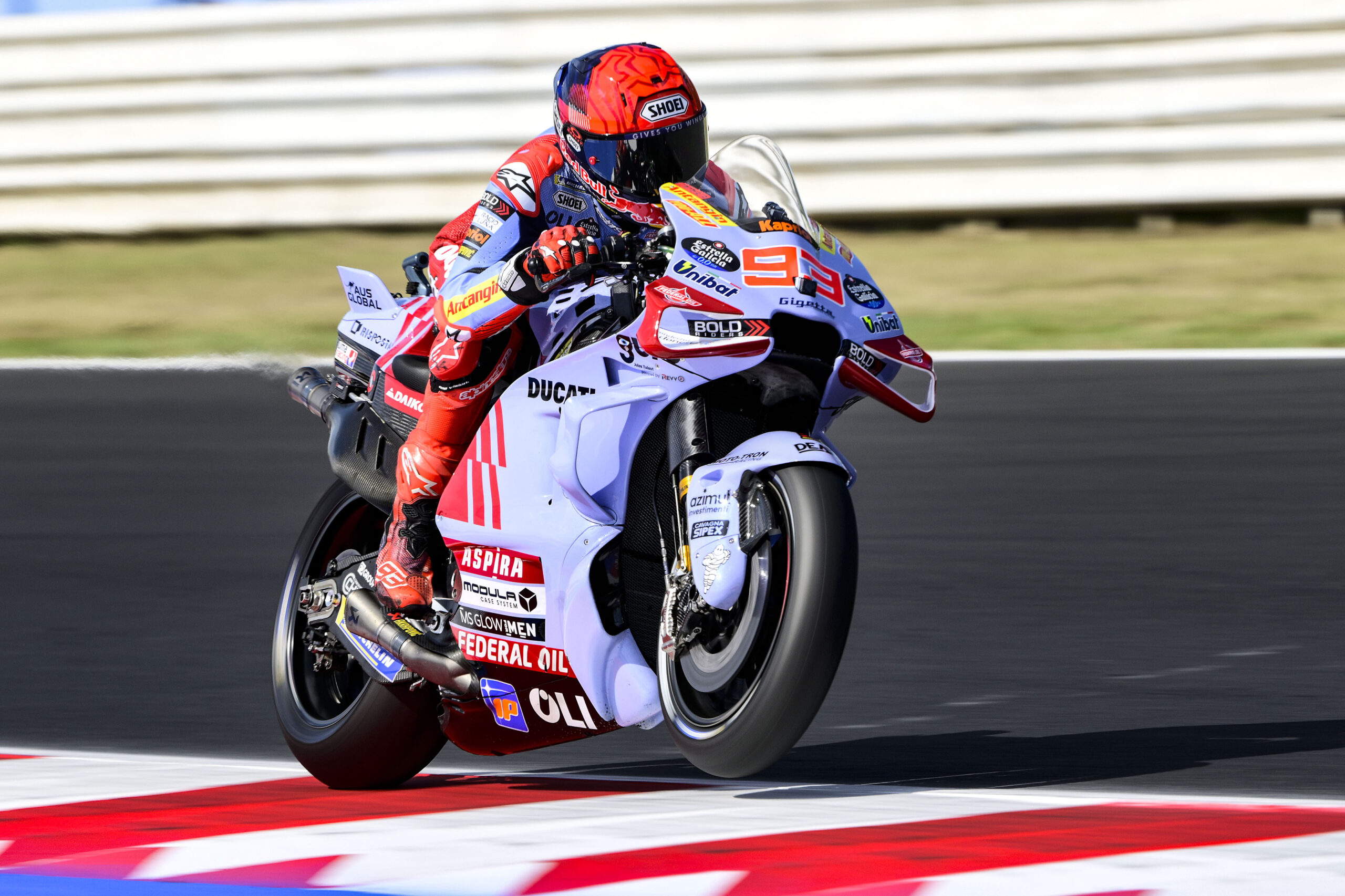 Marc Marquez aura ruiné ses espoirs de podium par une malheureuse chute en Qualifications. Engagé dans un tour rapide, le pilote Gresini a commis une erreur, avant de perdre le contrôle de sa moto, terminant sa course dans le bac à graviers.
