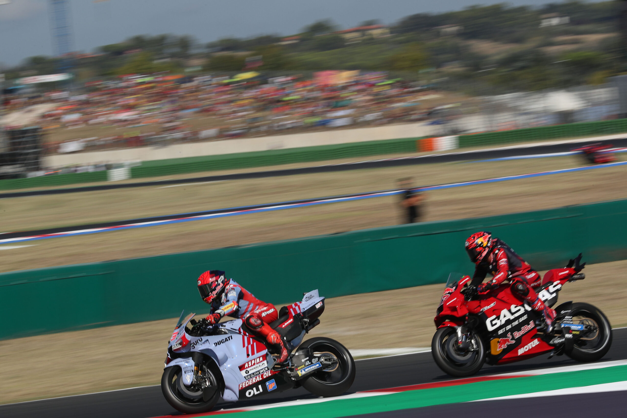 « Mon dépassement est plus une erreur d’Acosta qu’un dépassement de ma part, commente cette fois le pilote Gresini au micro de DAZN. Je pensais essayer de la dépasser plus tard, mais lorsqu’il est sorti un peu large, et que j’ai pu remettre les gaz bien plus rapidement que lui. Je suis rentré très rapidement dans le virage pour tenter ma chance. J’ai vraiment vu un trou par lequel m’engouffrer, et j’y suis allé à fond. »