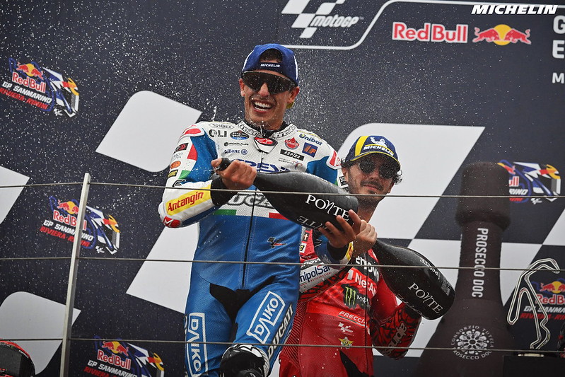 Après l’erreur de jugement de Jorge Martin au 7e tour, le Grand Prix MotoGP de San Marino à Misano aurait pu tendre ses bras à un Francesco Bagnaia en quête de rédemption, mais c’était sans compter un Marc Marquez opportuniste qui a obligé le double champion du monde en titre à légèrement revoir ses prétentions, comme il l’explique dans son débriefing après la course…