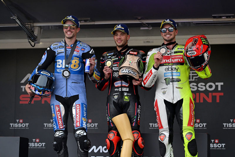 Marco Bezzecchi (Aprilia Racing) s’est illustré en décrochant la pole position et en remportant la Tissot Sprint devant Alex Marquez (BK8 Gresini Racing MotoGP) et Fabio Di Giannantonio (Pertamina Enduro VR46 Racing Team).