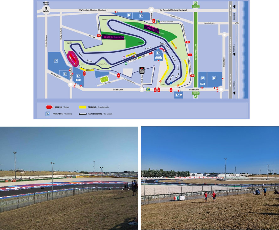 Les accréditations en main, nous sommes prêts à rejoindre le circuit ! A Misano, chaque tribune et les deux espaces en enceinte générale (Prato 1 et Prato 2) possèdent leur propre entrée. Il est impossible par exemple de faire le tour dans l’enceinte du circuit sans un pass « Viewing Area » réservé aux détenteurs d’un pass Paddock.