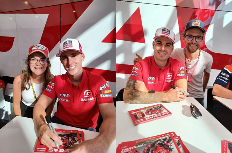 L’animation « Meet and Great » organisée par l’écurie Tech3 nous a permis d’échanger avec le jovial Pol Espargaro qui nous a rassuré sur son état physique et sa récupération, et aussi Augusto Fernandez, déçu pour le moment de son week-end. Nous lui avons rappelé son résultat au GP de France, ce qui lui a redonné le sourire. Les pilotes Moto3, Daniel Holgado et Filippo Farioli se sont aussi pris au jeu des questions/réponses et des photos souvenirs.