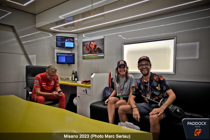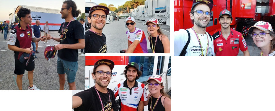 Au cours de nos longues promenades dans le paddock nous avons eu la chance de croiser de nombreux pilotes, toujours très accessibles et souriants, avec lesquels nous avons pu échanger quelques mots et prendre des photos (Tony Arbolino, Francesco Bagnaia, Johann Zarco, Dani Pedrosa, Alex Rins et bien d’autres…).