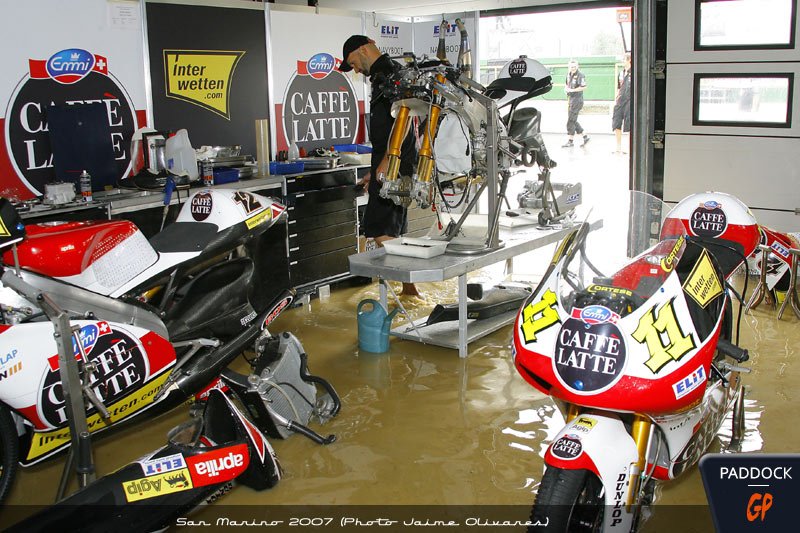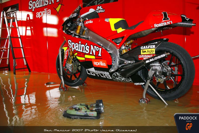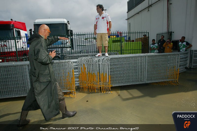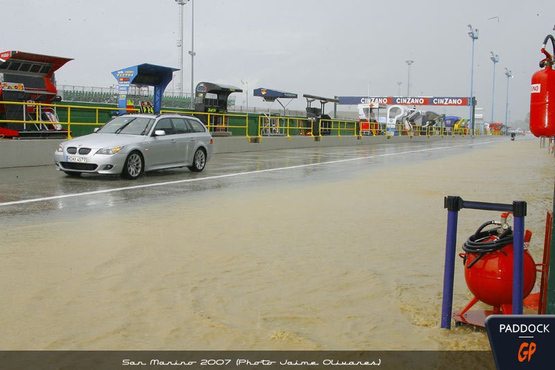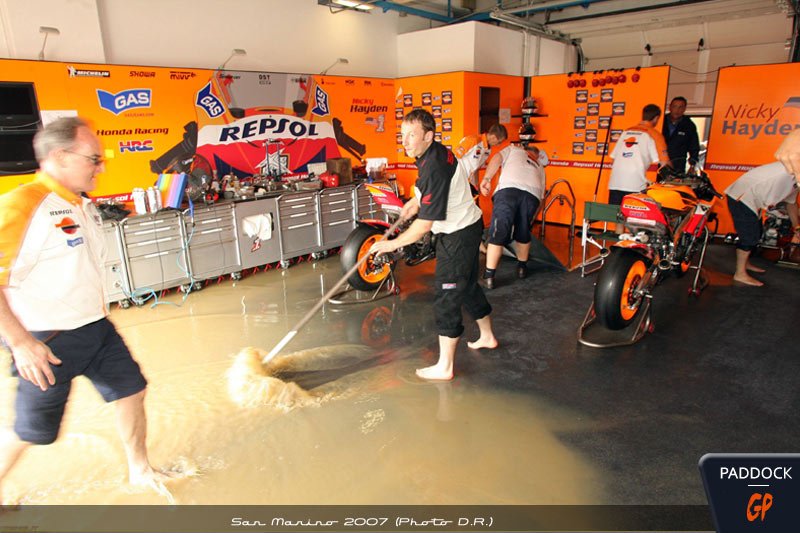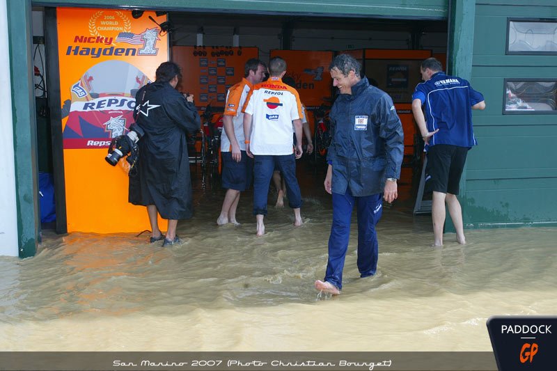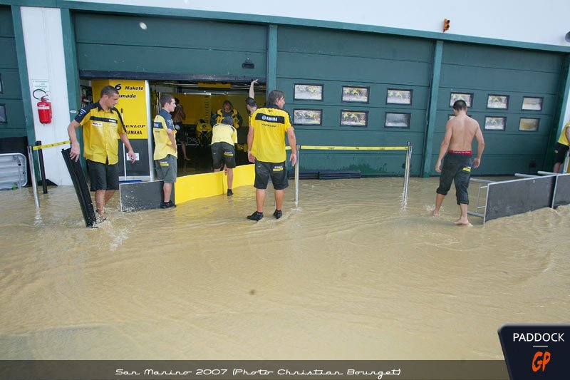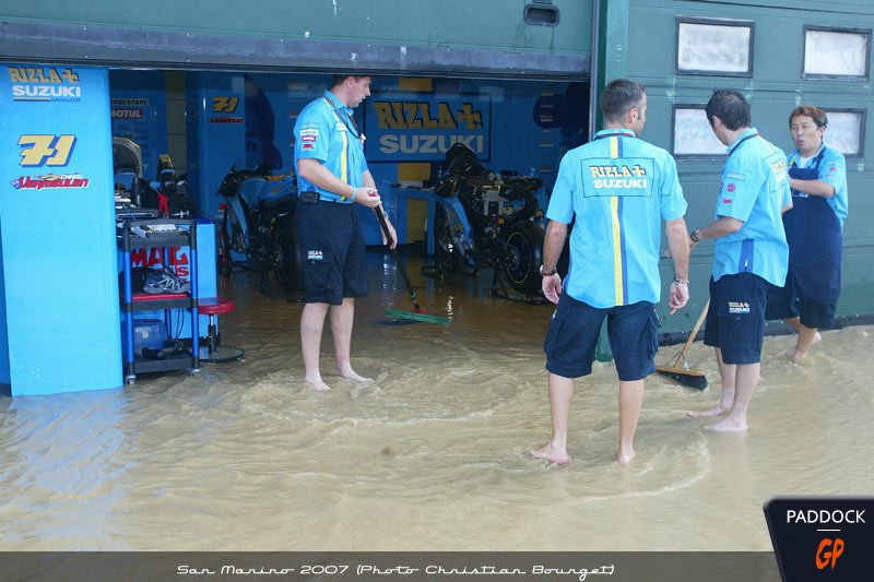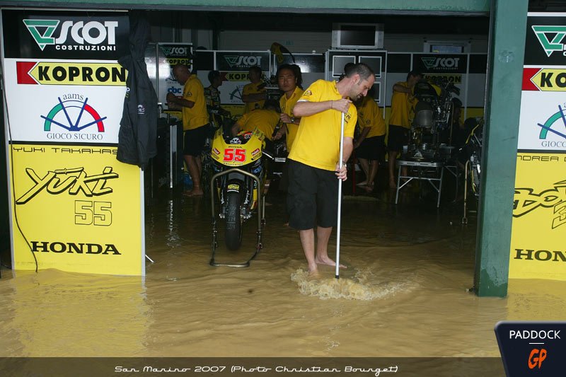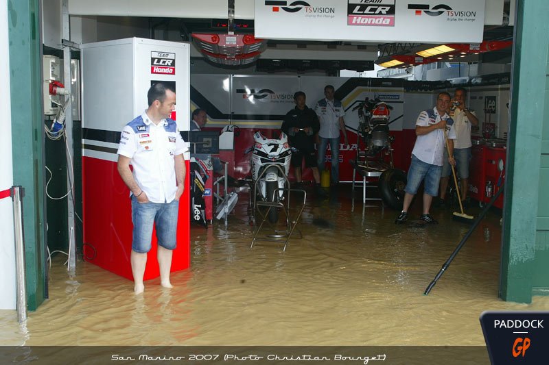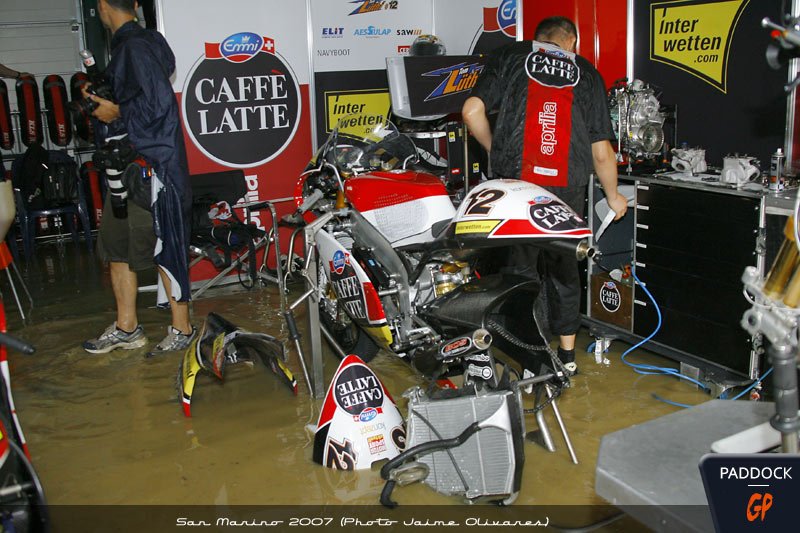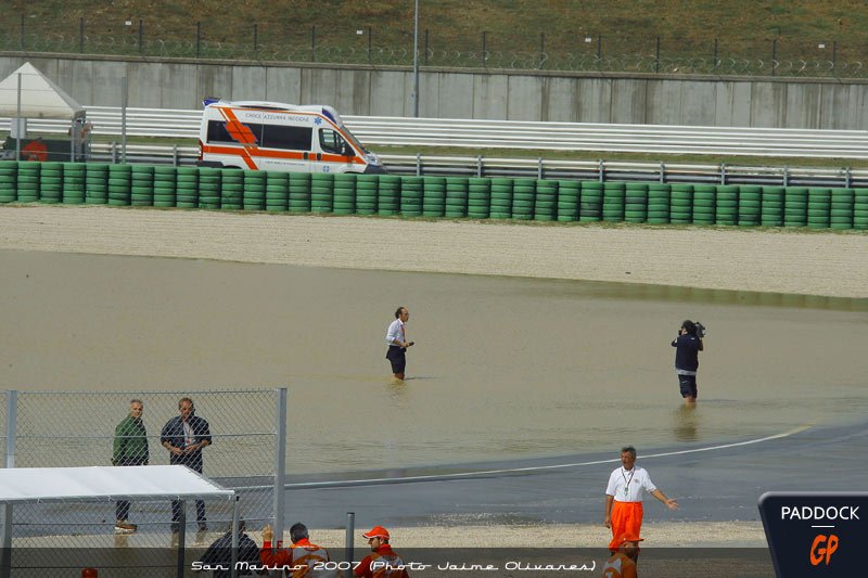Au Misano World Circuit Marco Simoncelli, on a tout connu, d’un ciel immaculé au plus violent des orages. Évidemment, si on apprécie davantage le premier, ce sont les derniers qui marquent le plus, à commencer par l’édition 2007 et son inondation aussi soudaine que complète de la piste et des box (voir la galerie ci-dessous), mais aussi le Grand Prix 2017 et son triste record de 140 chutes, dont 80 pour le seul dimanche, avec 54 lors des courses !