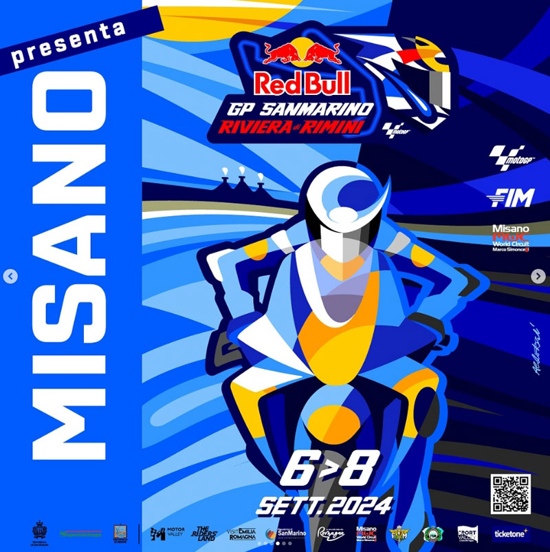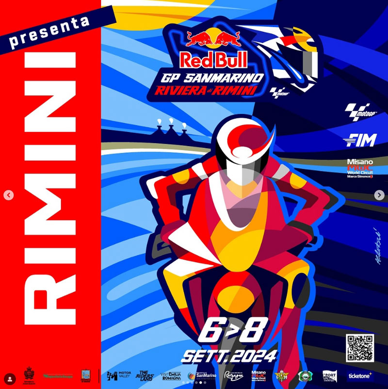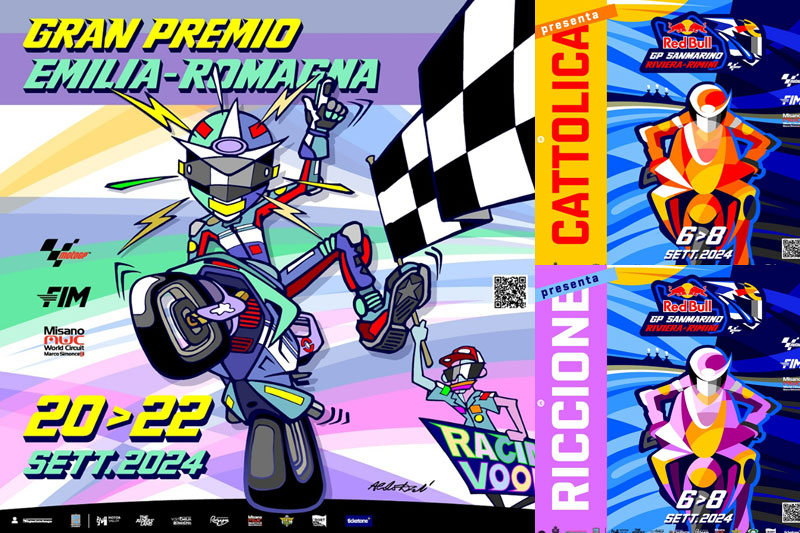 Les deux week-ends probablement pleins d’émotions commencent avec la présentation des affiches officielles. Pour le premier GP, celui de Saint-Marin et de la Riviera de Rimini, ce sont six versions dessinées par Drudi Performance qui seront imprimées, chacune portant le nom d’une communauté qui soutient l’événement: San Marino, Bellaria Igea Marina, Cattolica, Misano, Rimini et Riccione.
