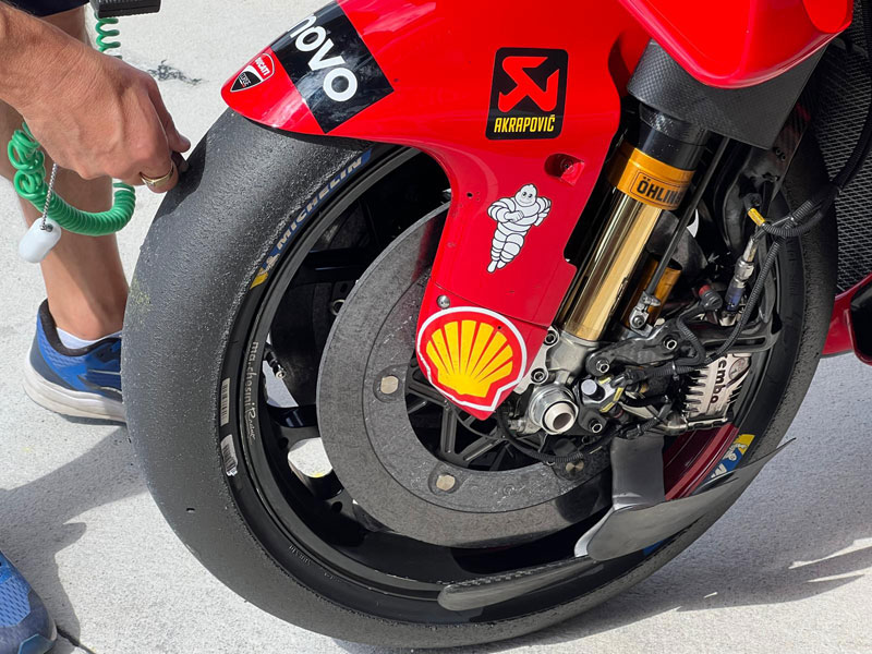 Paddock-GP est en mesure de confirmer que lors de celle-ci, tous les pilotes officiels seront obligés d’essayer le nouveau pneu avant, les autres feront ce qu’ils voudront. C’est un nouveau type de gomme que seuls les pilotes d’essai ont pu essayer. Tout est nouveau : carcasse, gomme, profil. Ce dernier offre notamment une plus grande surface de contact avec la piste.