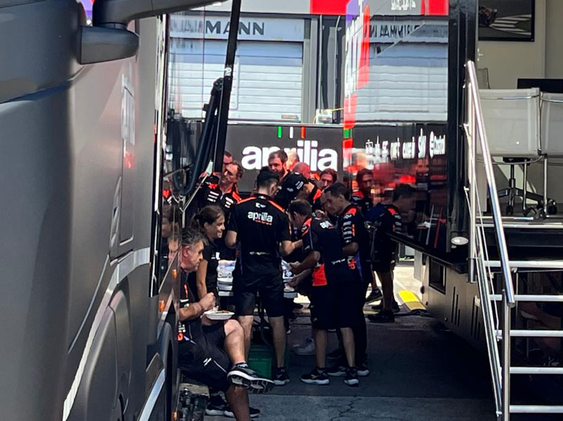 Aleix Espargaro prend du repos après un enchaînement de tours impressionnant. Il passe le relais à Lorenzo Savadori et Maverick Viñales, le second cité étant le pilote qui revendique le plus grand nombre de tours au terme de la seconde séance de roulage.