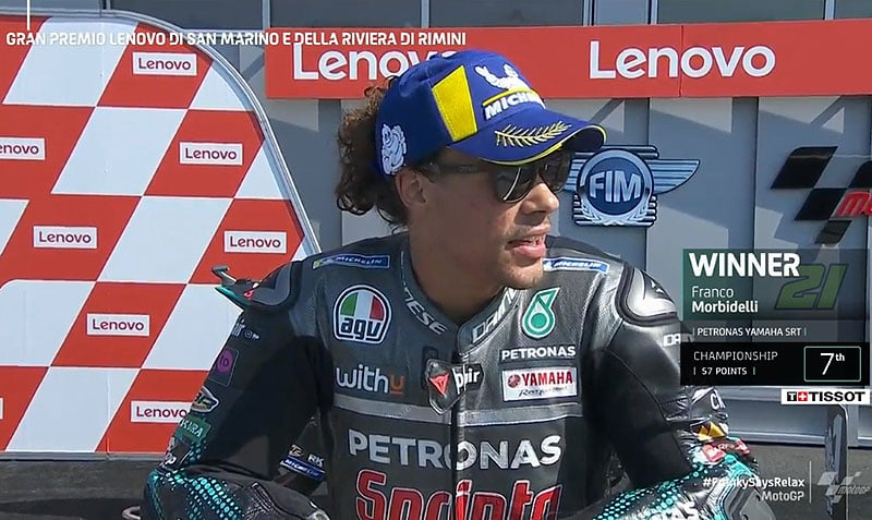 A peine descendu de sa Yamaha M1 satellite du team Petronas SRT après avoir remporté le Grand Prix de Saint-Marin à Misano, Franco Morbidelli s’est confié devant la caméra du site MotoGP.com avec l’immense joie (toujours un peu cachée) d’avoir remporté son premier Grand Prix en catégorie reine…